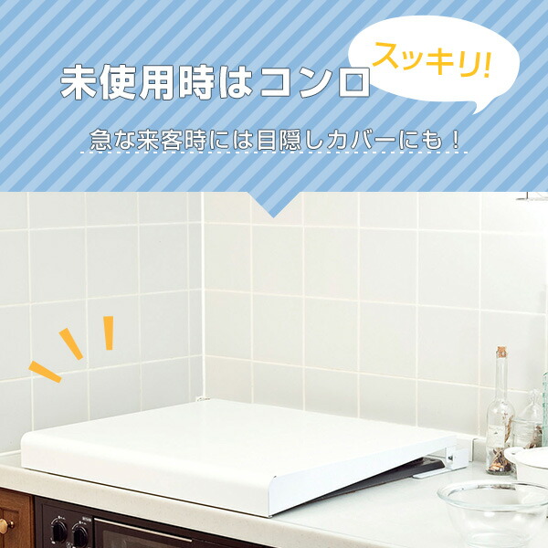 コンロ上を広々使え猫除けとして使えます 即発 ガスコンロやihコンロにも対応倒すと目隠しやちょっとした作業台 開いて油ガード猫除け としても重宝するコンロ上が色々使える コンロカバー 幅67 5 猫ガード キャット カバー